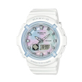 ラウンド型ケースでキュートな印象ながらボリューム感のあるフォルムに、メタリックのインデックスでスポーティなディテールもプラスしています。カラーにはホワイトをセレクト。機能面では、耐衝撃構造や10気圧防水搭載で実用性も装備しています。