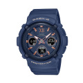 ボリューム感のあるフォルムのBGA-2800シリーズで、カラーは様々なコーディネートに取り入れやすいくすみ系のネイビー。機能面では、耐衝撃構造や10気圧防水、世界6局の電波を受信し時刻を自動修正するマルチバンド6、ワールドタイム、タフソーラー等、頼れる機能を備えています。