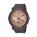 BABY-Gの耐衝撃性はそのままに、軽くスリムなデザインに仕上がっています。ベースカラーには上品で落ち着いたブラウンをセレクト。文字板にはローマンインデックスを配置し、エレガントな雰囲気に。針やインデックスのカラーは華やかな印象のピンクゴールドを採用。ベゼルリングには蒸着処理を施し、メタリック感が美しい質感に仕上げています。また、バンドにはテクスチャーを施しております。機能面では耐衝撃構造や10気圧防水搭載で実用性も兼備しています。どんなコーデにも相性がよく、軽くて快適な装着感のBABY-Gです。