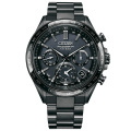 光沢のあるブラックのサファイアベゼルが、ワントーンで統一されたクールな文字板をまとめ上げています。文字板を構成する各パーツには、質感や色味が異なるブラックを使い、主張を感じる力強いフェイスに仕上っています。