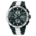傷がつきにくいスーパーブラックダイヤシールド※を表面に施したチタンケースにホワイトセラミックスを合わせることで、異素材の融合を際立たせたコントラストのあるデザインに仕立がっています。